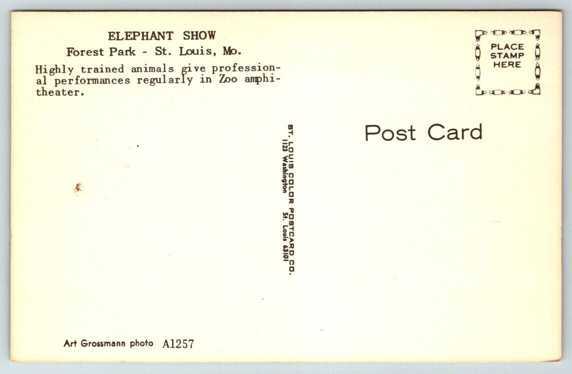 St. Louis Missouri Forest Park Elephant Show Postcard
