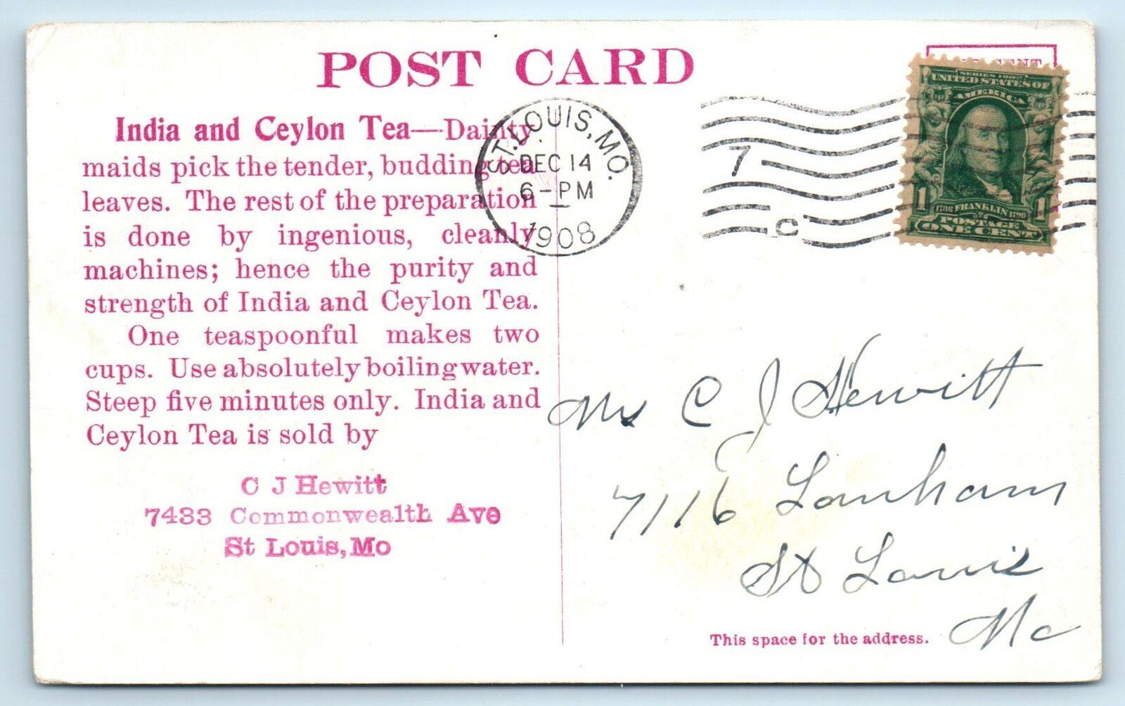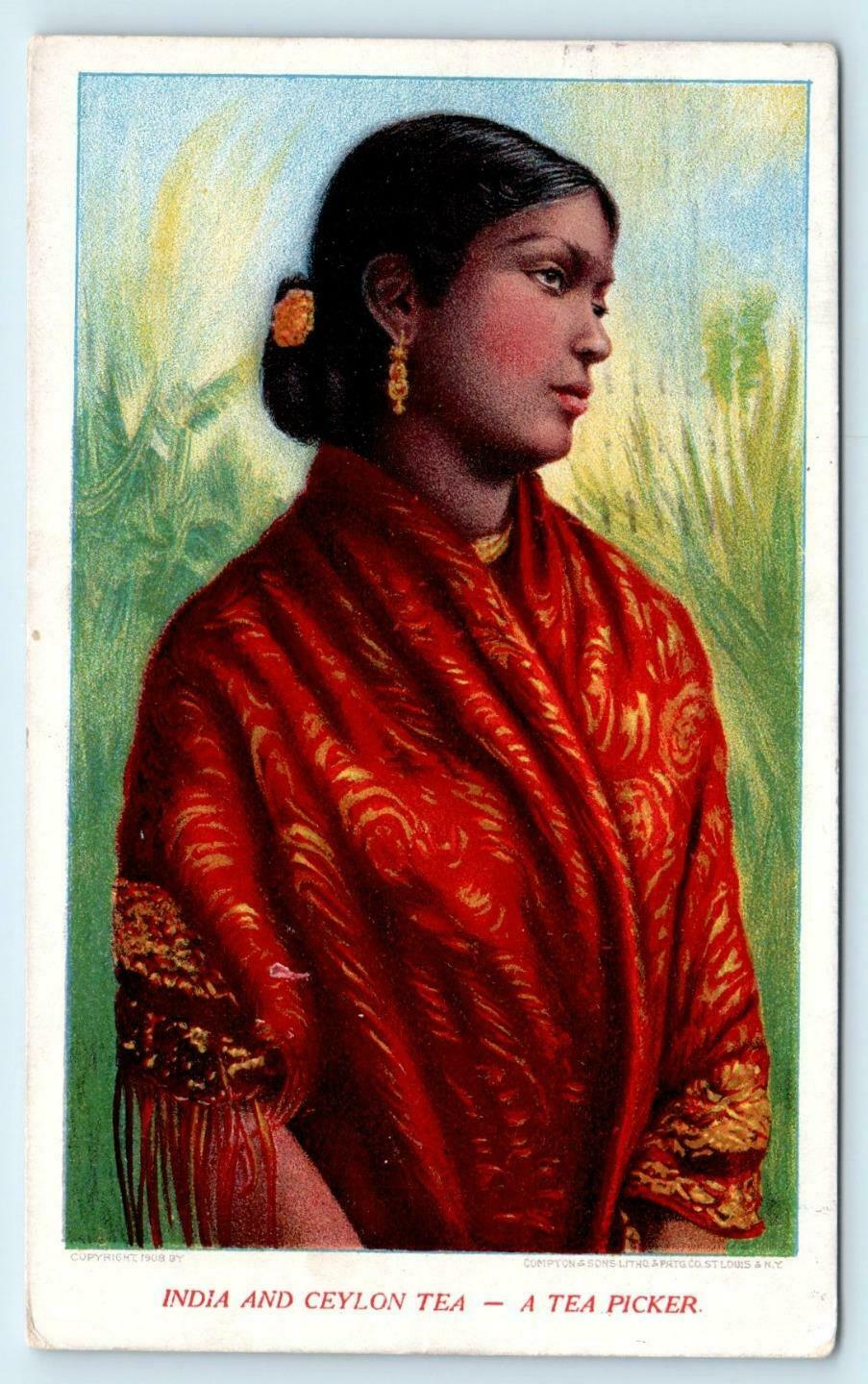 ST LOUIS, MO~ INDIA & CEYLON TEA ~ A Tea Picker 1908 Adverstising Postcard