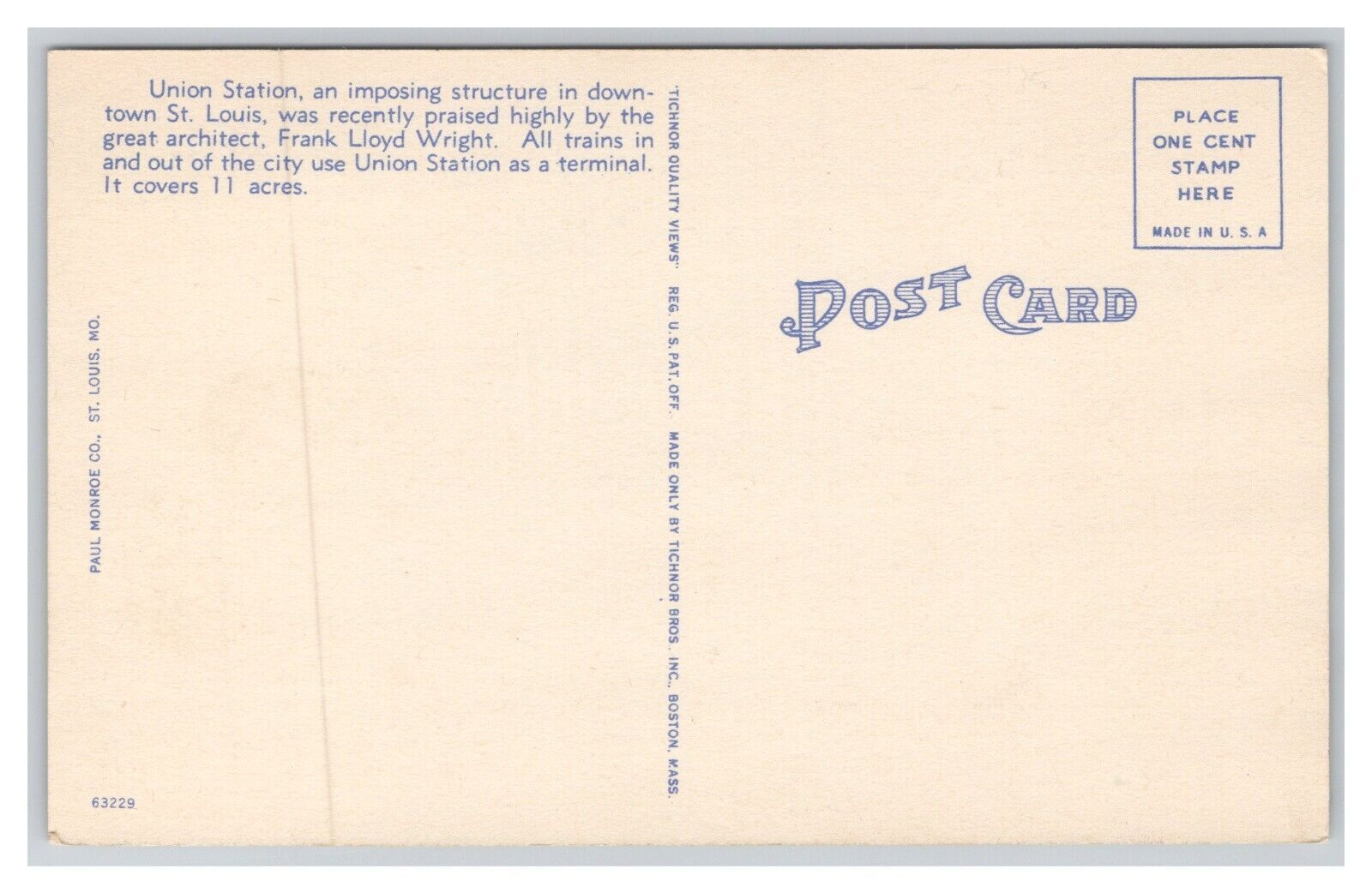 St. Louis MO. Missouri Union Station Postcard