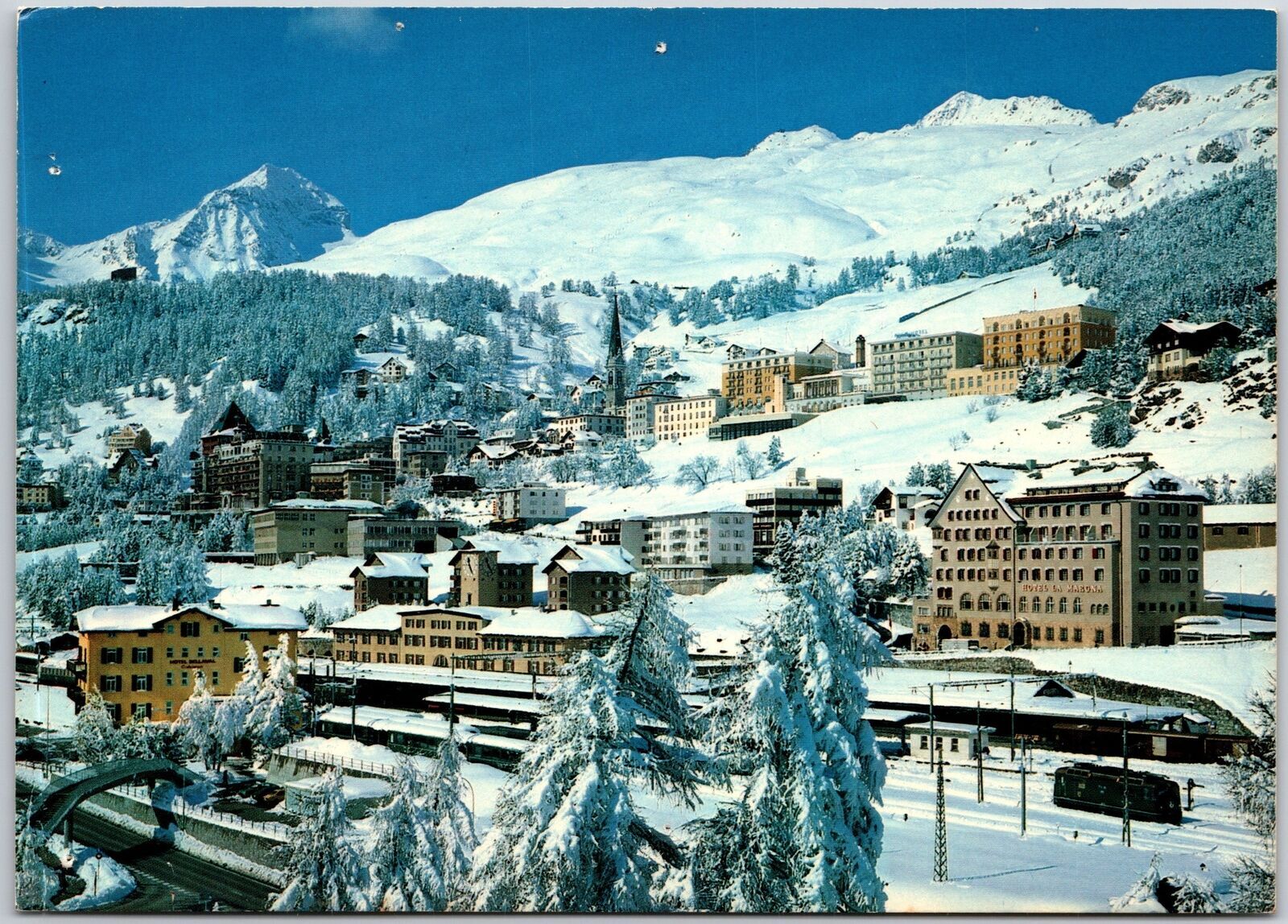 St. Moritz Switzerland Snow Capped Buildings Mountain Sightseeing Postcard