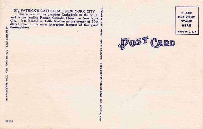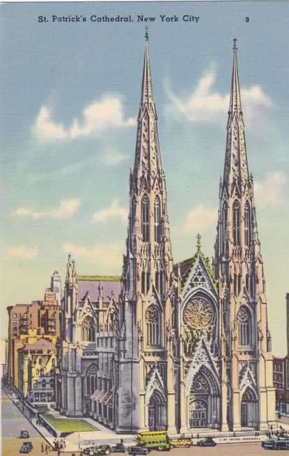 St Patrick's Cathedral - New York City.Standard sized linen post card.
