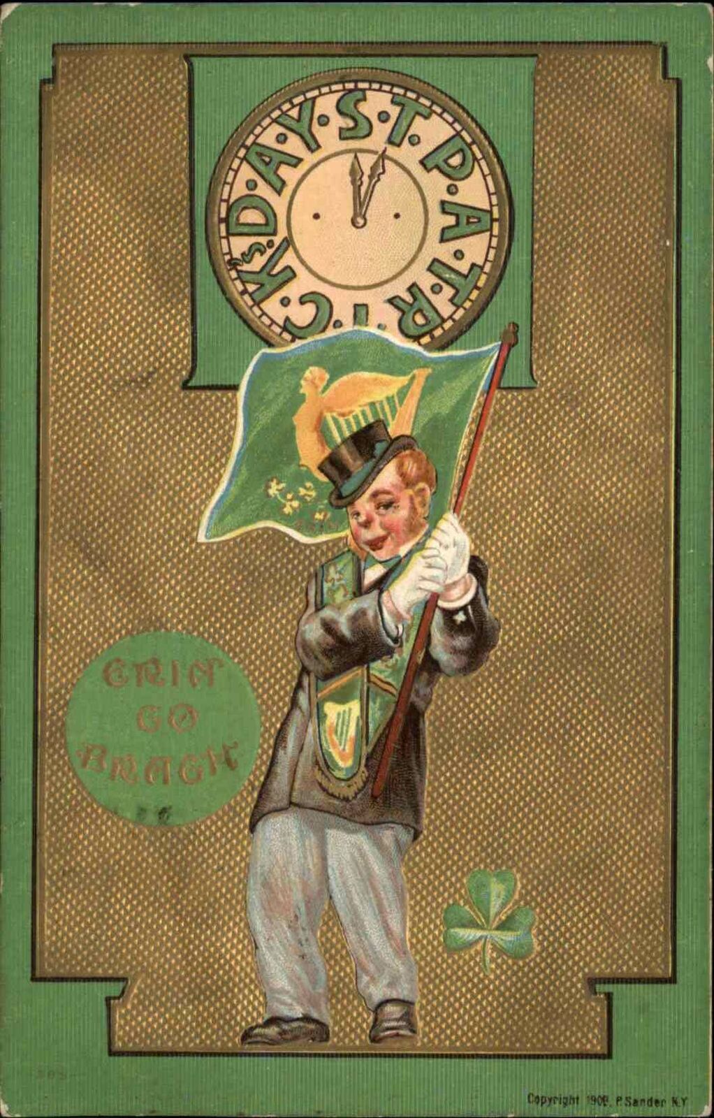 ST PATRICK'S DAY ERIN GO BRAGH Irish Man w Flag EMBOSSED c1910 Postcard