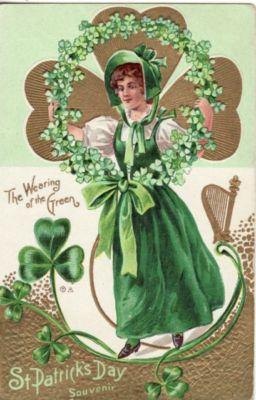 ST PATRICK'S DAY LADY with SHAMROCK WREATH postcard