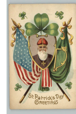 ST PATRICK'S DAY Old Man Irish & US Flags c1910 PC