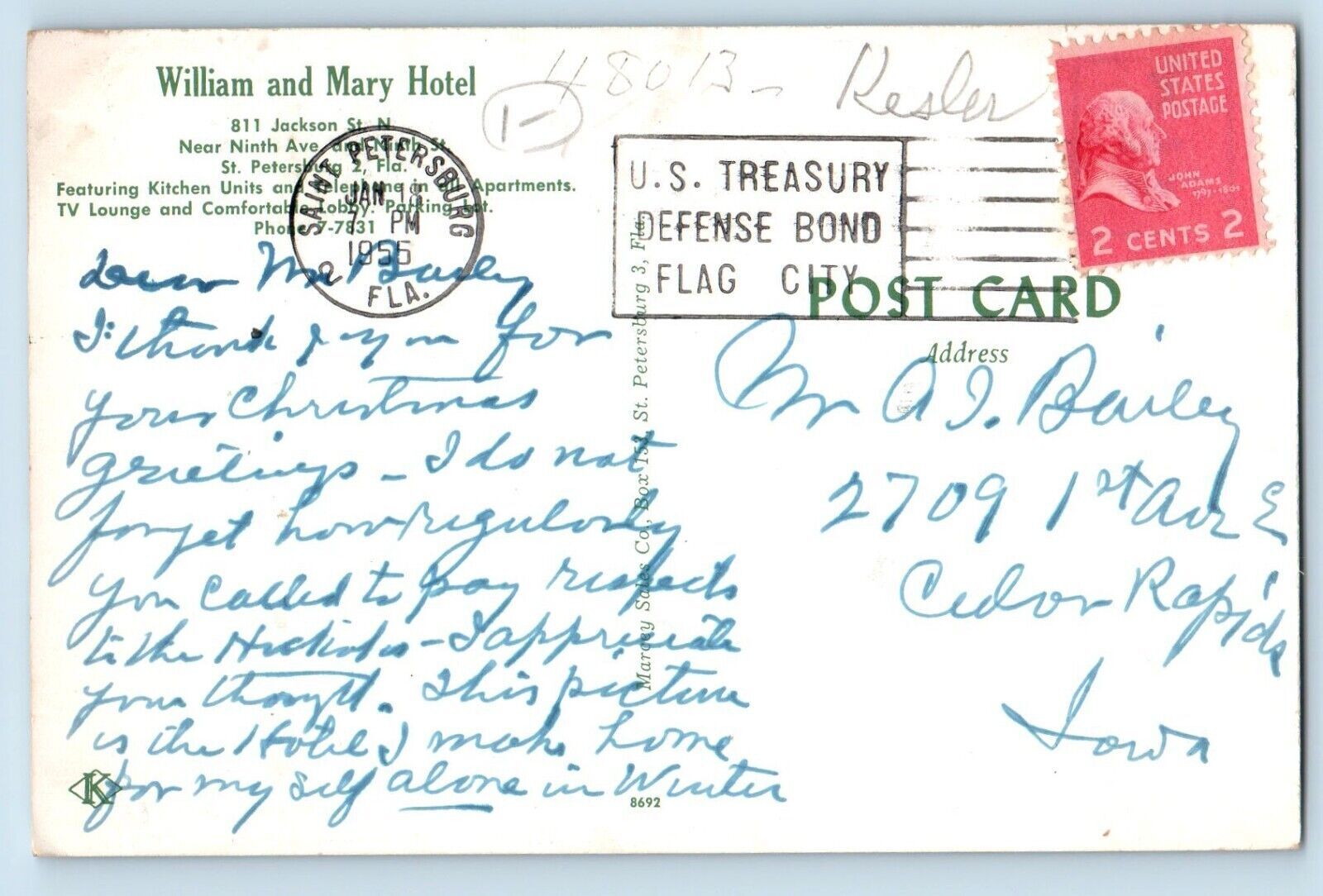 St. Petersburg Florida Postcard William Mary Hotel Jackson 1955 Vintage Antique