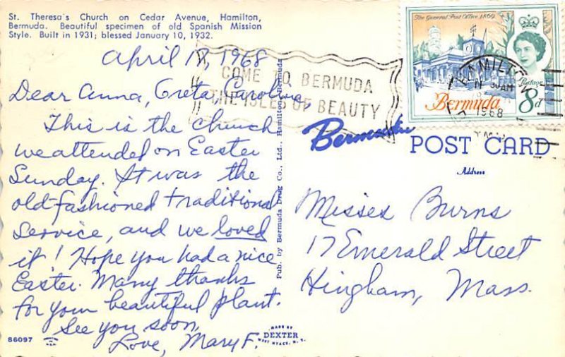 St. Theresa's Church Hamilton Bermuda Postcard