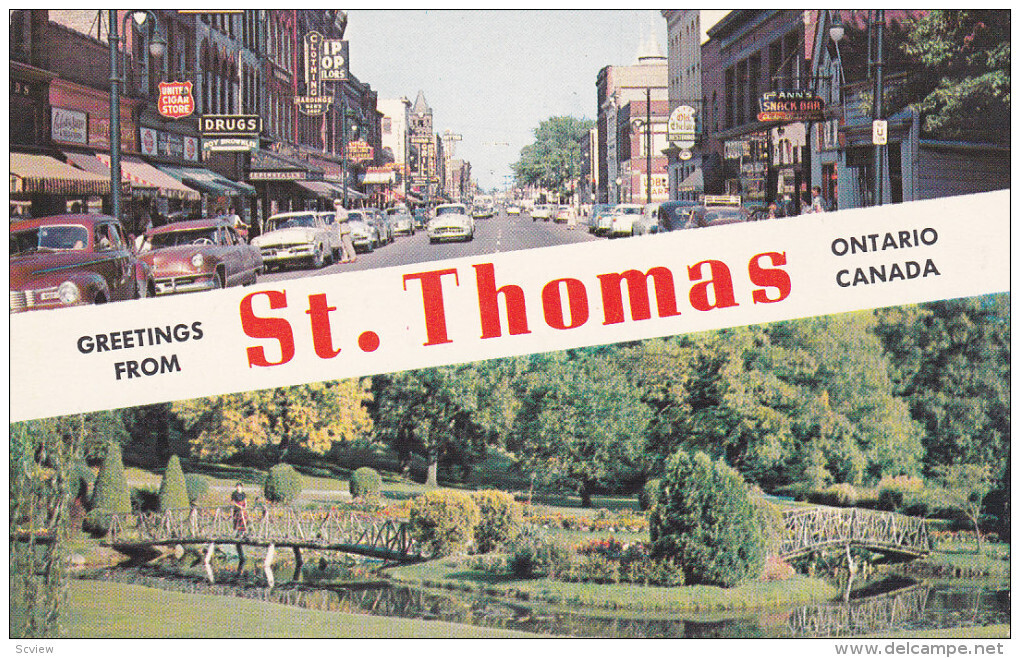 ST THOMAS , Ontario , Canada , 50-60s :: Postcard, 3.5" by 5.5", Chrome , EX