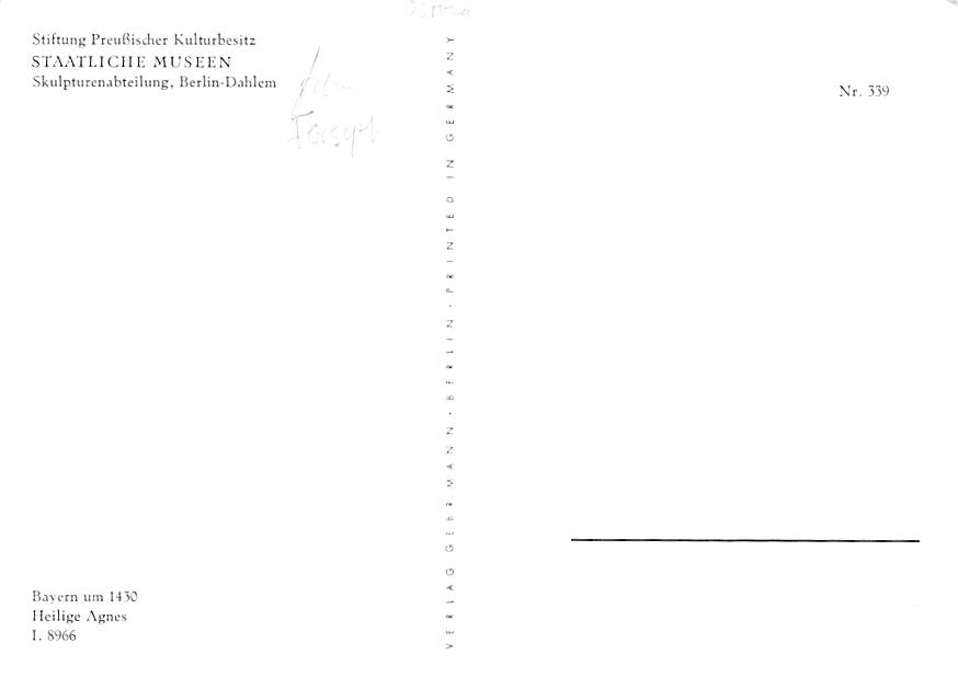 Staatliche Museen - Berlin Dahlem Grade: 1 Category: Continental Size Postcard, Approx 4 in x 6 in (10 cm x 15.25 cm) Product Size: Continental size: 4X6 inches (10.5 cm x 15 cm) Grading Scale: Grade 1 = Perfe ... Read More