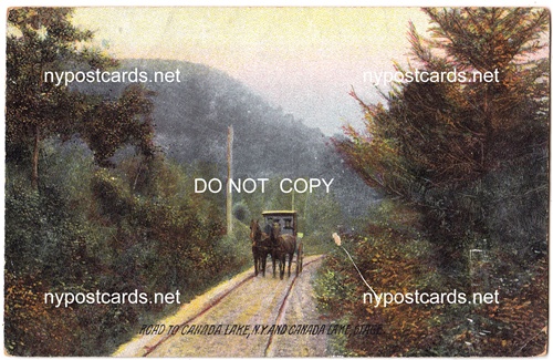 Stage & Road to Canada Lake Ny Description: Postal Usage: Unmailed Condition: Good Type: Printed Note: Glue spots on back County: Fulton Co. > Canada Lake