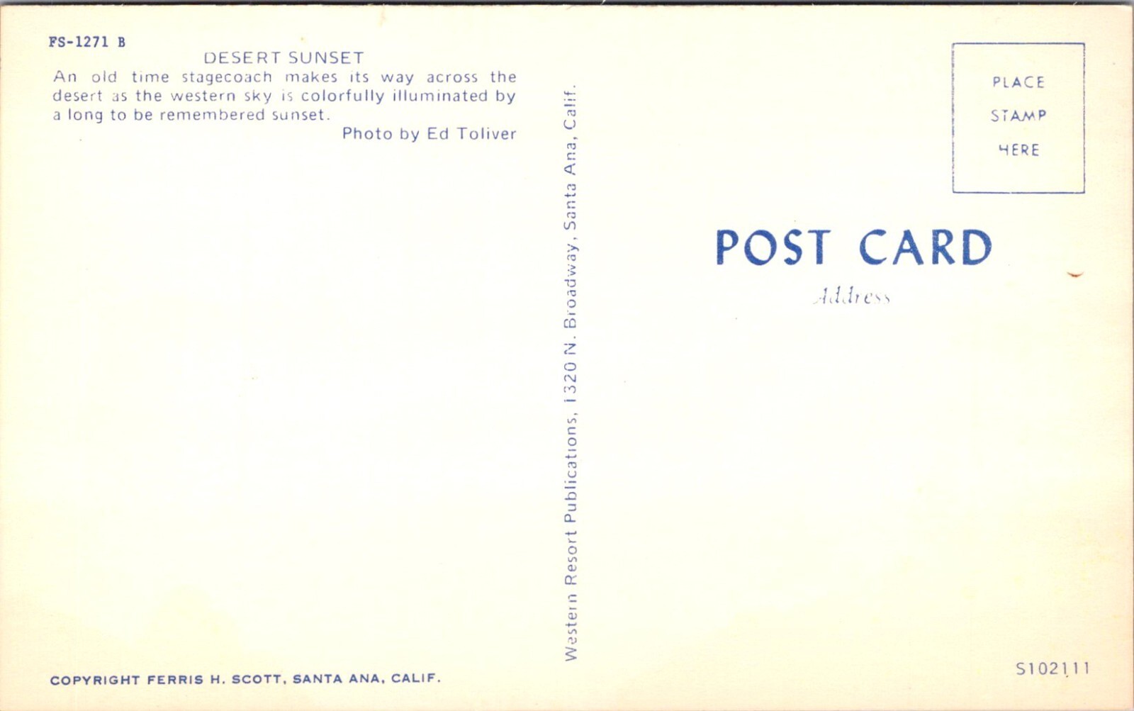 Stagecoach at Sundown, Greetings From Baker CA Vintage Postcard Y37