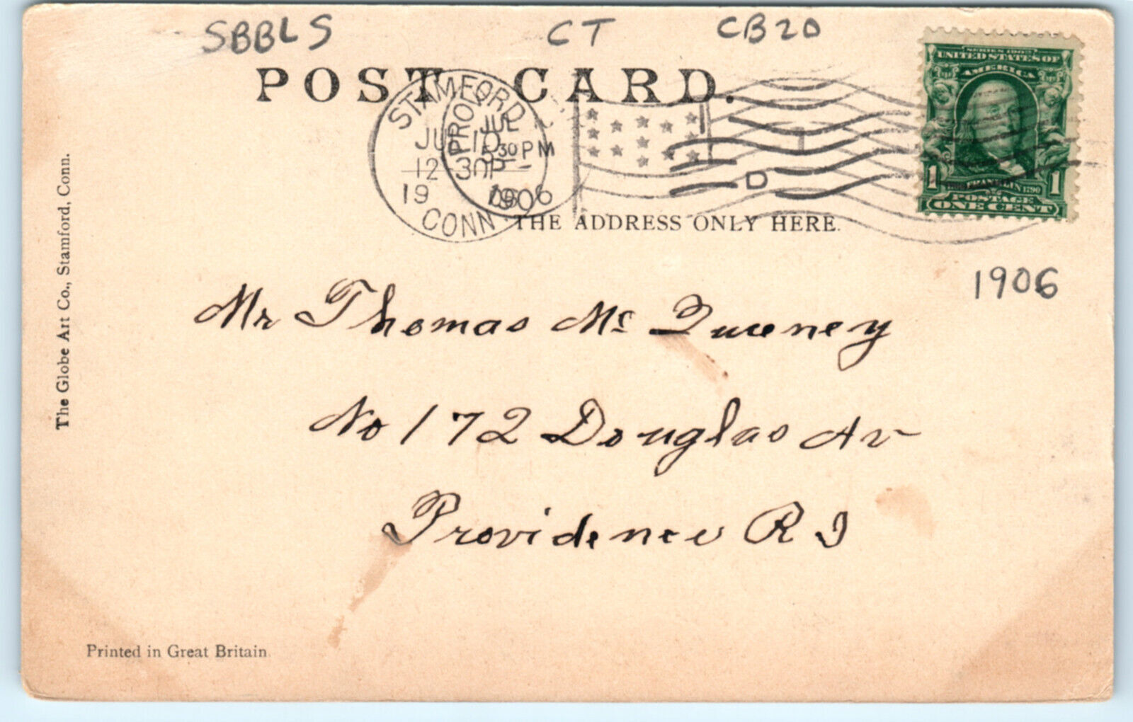 This postcard is a unique piece of American history, showcasing the city of Stamford, Connecticut in 1906. The lithograph print captures a bird's eye view of the city, highlighting its architecture, community life, and roads and highways. The aerial view captures the essence of life in Stamford during the turn of the century, providing a glimpse into the past. The postcard is an original piece, posted with a stamp. It is a great addition to any collection of topographical postcards, postcards, or collectibles. The city of Stamford is still thriving today, making this postcard a valuable piece of history for any collector or enthusiast. 3.5 X 5.5 inch vintage postcard bumping,some wear from use, age transport and storage. edge bumping and wear. Please see our color scans/photos they are a key part of the item and condition description. We will get back to you ASAP with answers to any questions you may have prior to bidding or purchase. 1
