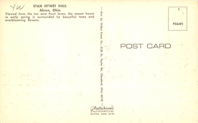 Stan Hywet Hall Akron, Ohio OH Postcard - View back of card
