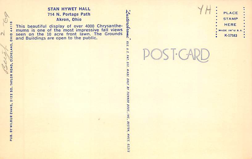 Stan Hywet Hall Akron, Ohio OH Postcard - View back of card