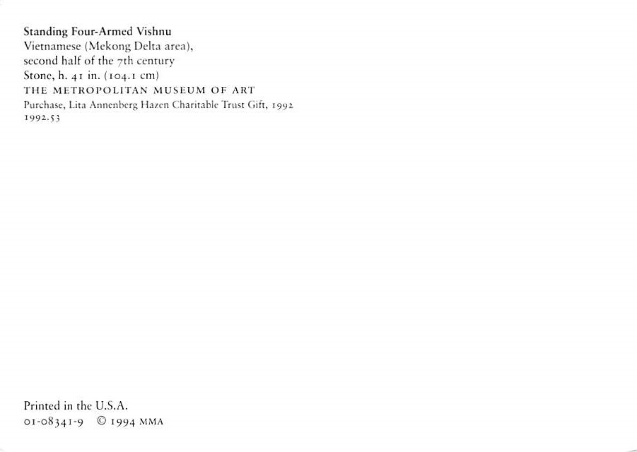 Standing Four Armed Vishnu - Vietnamese Continental Size Postcard, Approx 4 in x 6 in (10 cm x 15.25 cm) Continental Size: 4X6 inches (10.5 cm x 15 cm)