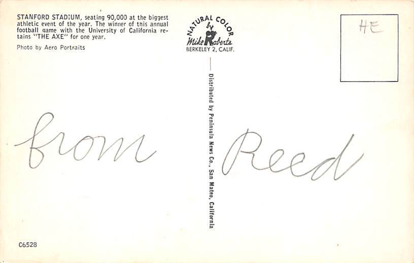 Stanford Stadium CA, USA Stadium, Misc. Writing on Back