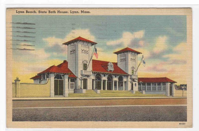 Description: State Bath House Lynn Beach Massachusetts 1942 postcardType: linen