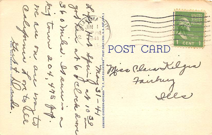 State Capitol Building Oklahoma City, OK, USA Postcard - 1941 Grade: 3 Size: R - Regular Size Postcard - approximately 3 1/2 inch x 5 1/2 inch (9 CM x 14 CM) Grading Scale: Grade 1 = Perfect corners Grade 2 = V ... Read More