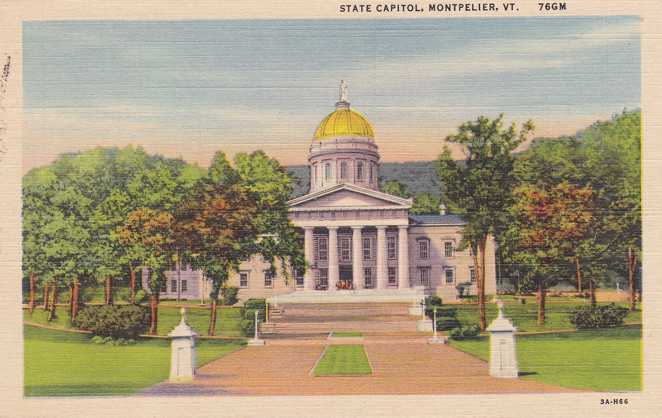 State Capitol - Montpelier, Vermont. Standard sized linen post card. The Curt-Teich Dating Guide assigns 3A-H66 to 1933. Very good condition.