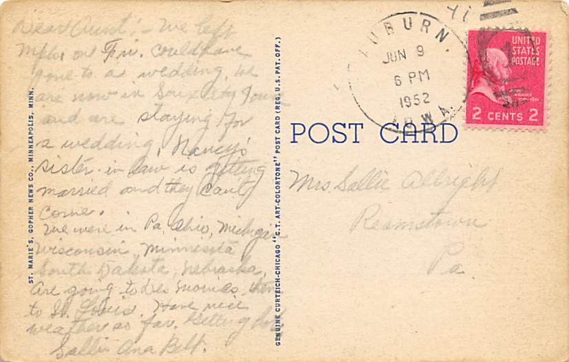 Postal Date: 1952