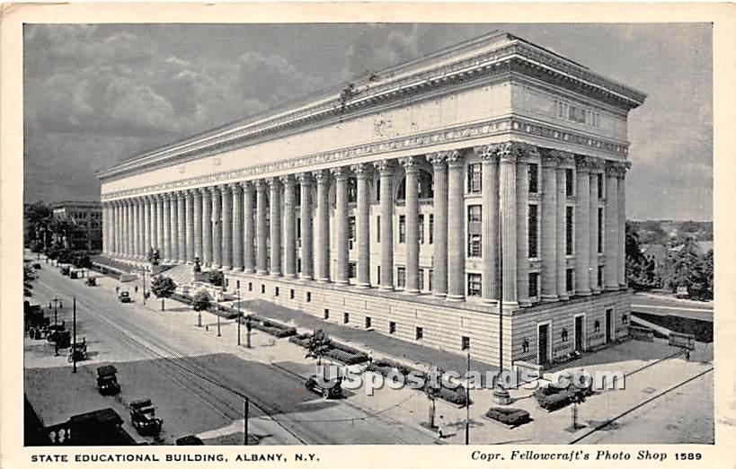 State Educational Building - Albany, New York Postcard - 1938 Grade: 2 Size: R - Regular size: Approx 3 1/2 X 5 1/2 inch (9 cm X 14 cm) Grading Scale: Grade 1 = Perfect corners Grade 2 = Very Minimal corner we ... Read More