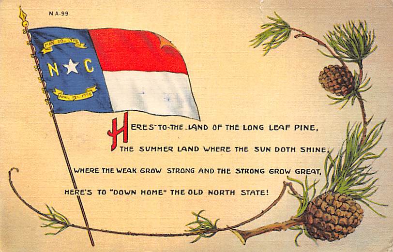 State Flag Misc, North Carolina NC - Postcard Grade: 3 - tear top edge Size: R - Regular Size Postcard - approximately 3 1/2 inch x 5 1/2 inch (9 CM x 14 CM) Grading Scale: Grade 1 = Perfect corners Grade 2 = V ... Read More