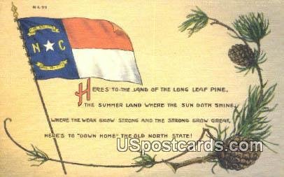 State Flag, NC Postcard - Unused Grade: 1 Size: R - Regular size: Approx 3 1/2 X 5 1/2 inch (9 cm X 14 cm) Grading Scale: Grade 1 = Perfect corners Grade 2 = Very Minimal corner wear, no creases Grade 3 = Some ... Read More