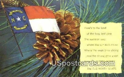 State Flag, NC Postcard - Unused Grade: 1 Size: R - Regular size: Approx 3 1/2 X 5 1/2 inch (9 cm X 14 cm) Grading Scale: Grade 1 = Perfect corners Grade 2 = Very Minimal corner wear, no creases Grade 3 = Some ... Read More