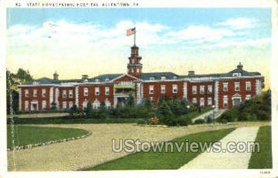 State Homeopathic Hospital in Allentown, Pennsylvania vintage postcard from our collection of over 2 Million old antique post cards of US States, Cities and Town Views.
