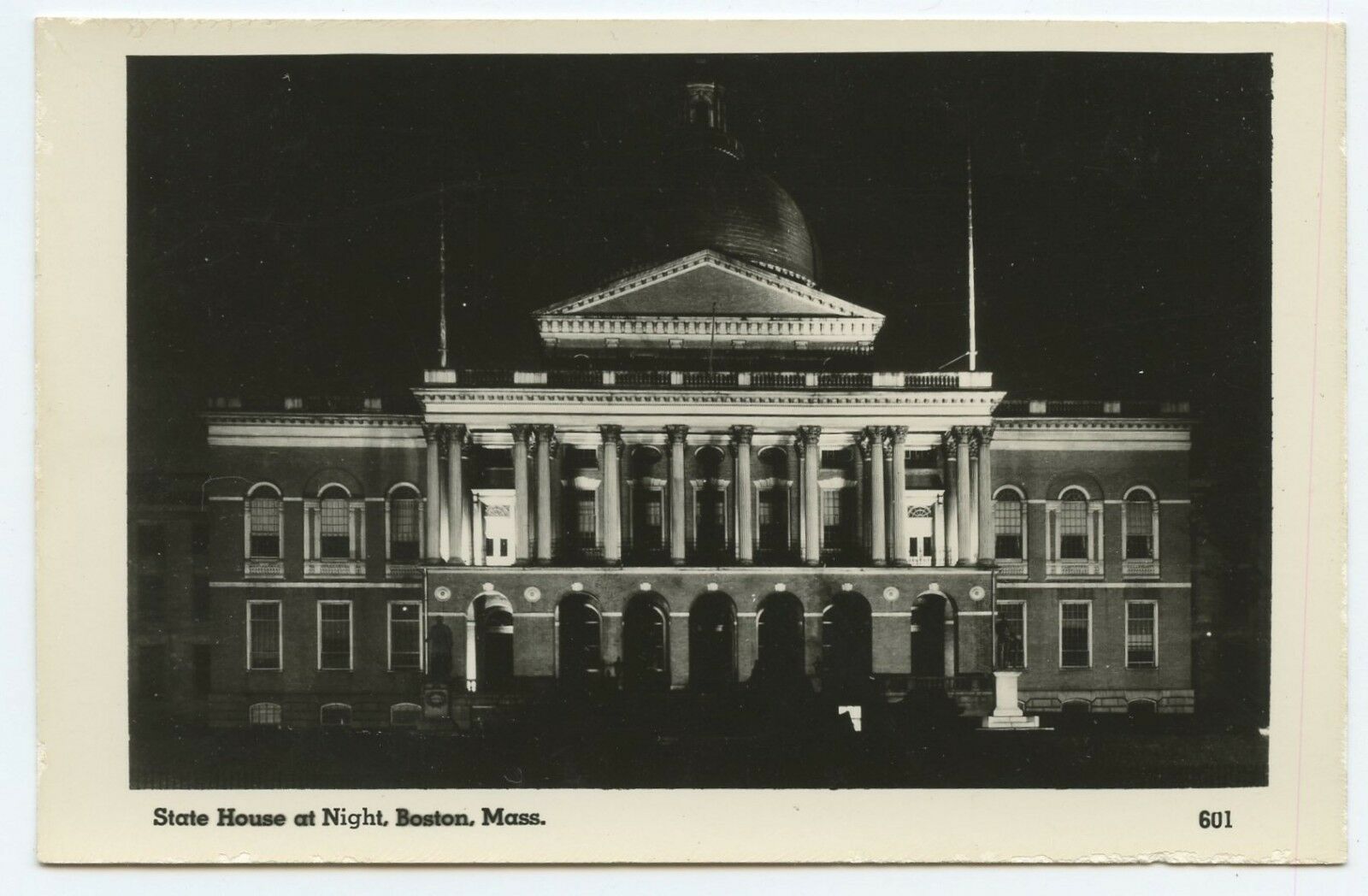 State House at Night Boston massachusetts RPPC