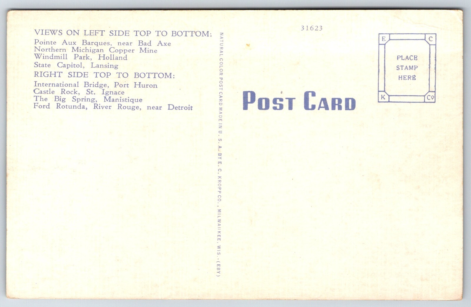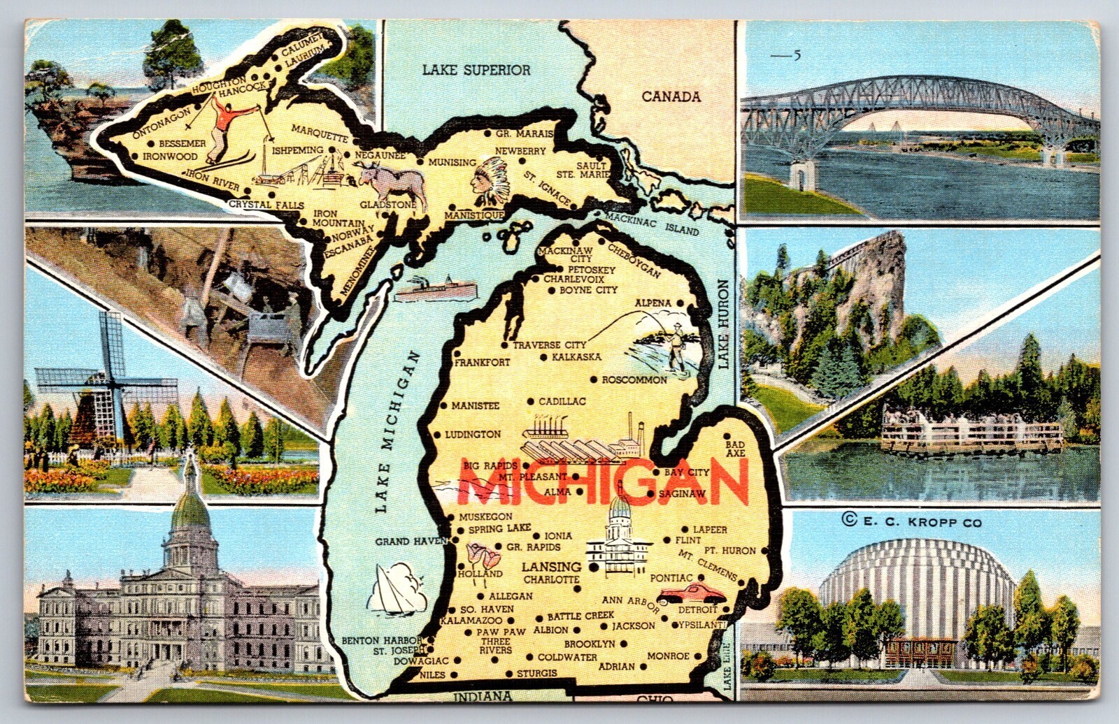 State Maps~Michigan~Multi-View~Windmill Park~Capitol Bldg~Castle Rock~Vintage PC