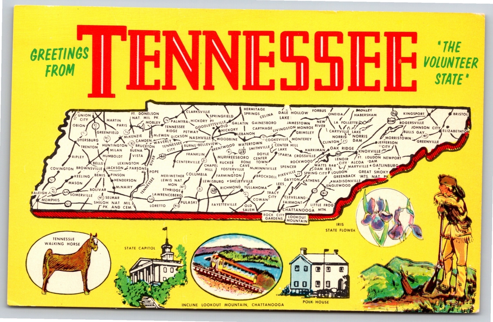 State Maps~Tennessee Map Walking Horse Incline Mt & Capitol~Vintage Postcard