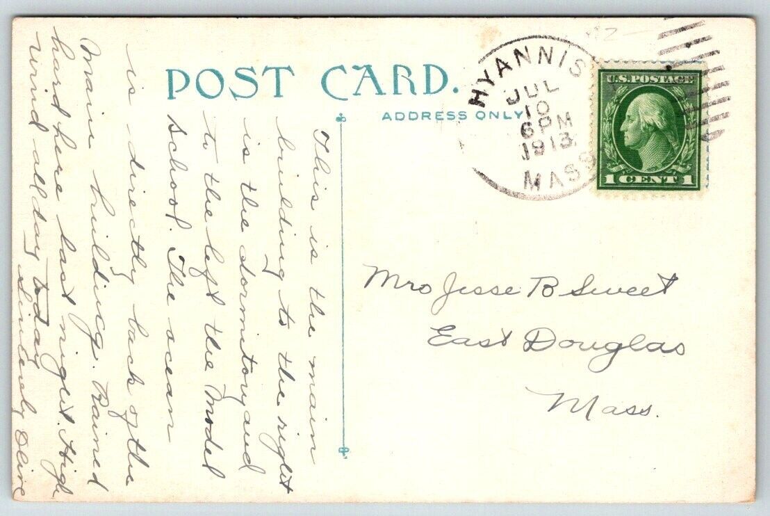 State Normal School Hyannis Cape Cod Massachusetts Postcard 1913