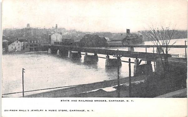 State & Railroad Bridges Carthage, New York Postcard Postal Date: Unused Grade: 1 Size: Regular Size Postcard - approximately 3 1/2 inch x 5 1/2 inch (9 CM x 14 CM) Grading Scale: Grade 1 = Perfect corners Gr ... Read More
