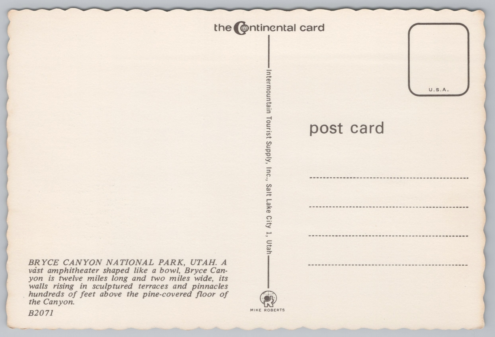 State View~Air View Bryce Canyon Park Utah~Continental Postcard