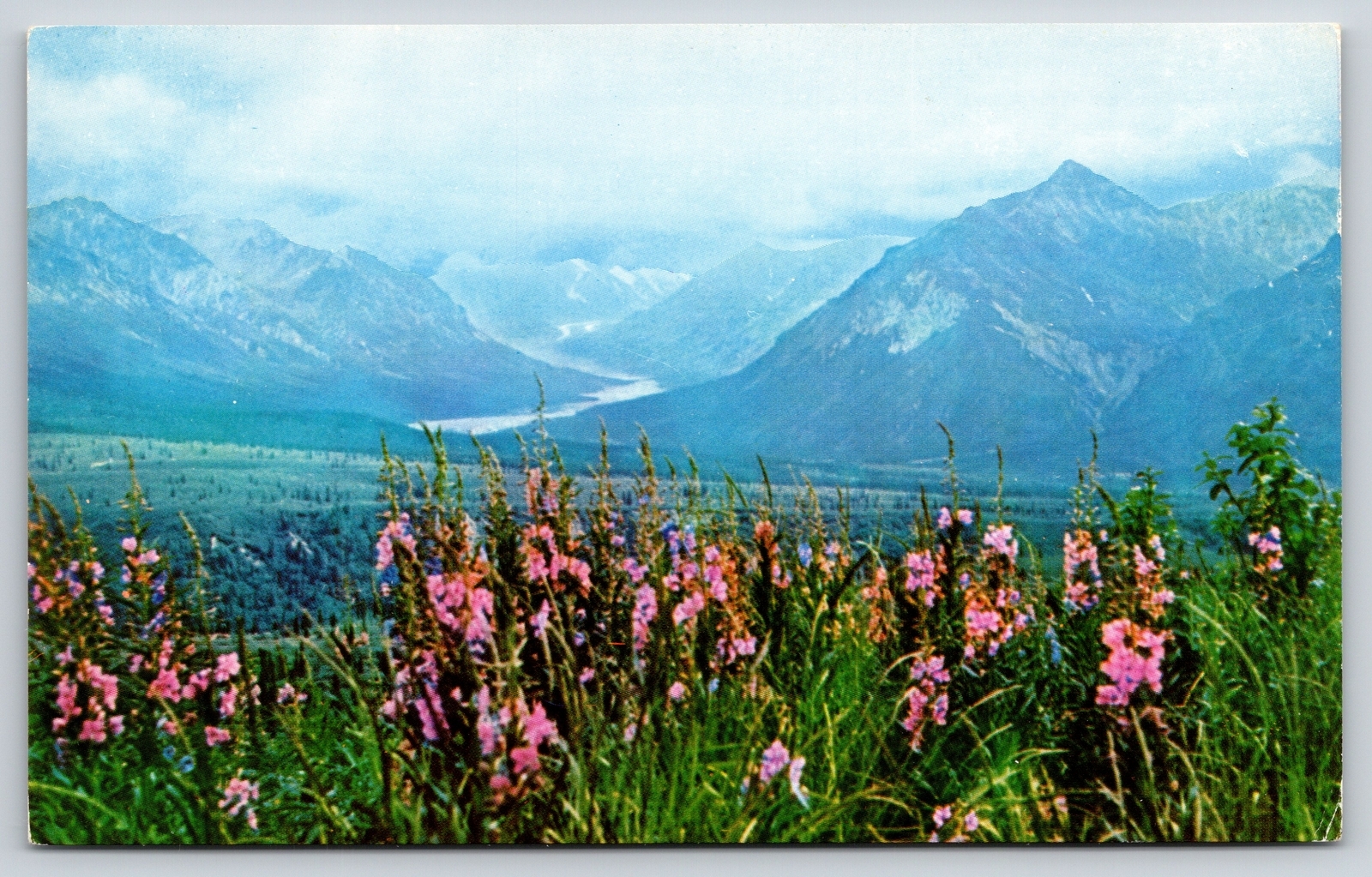 State View~Alaska Range & Fireweed From Eureka Flats~Vintage Postcard