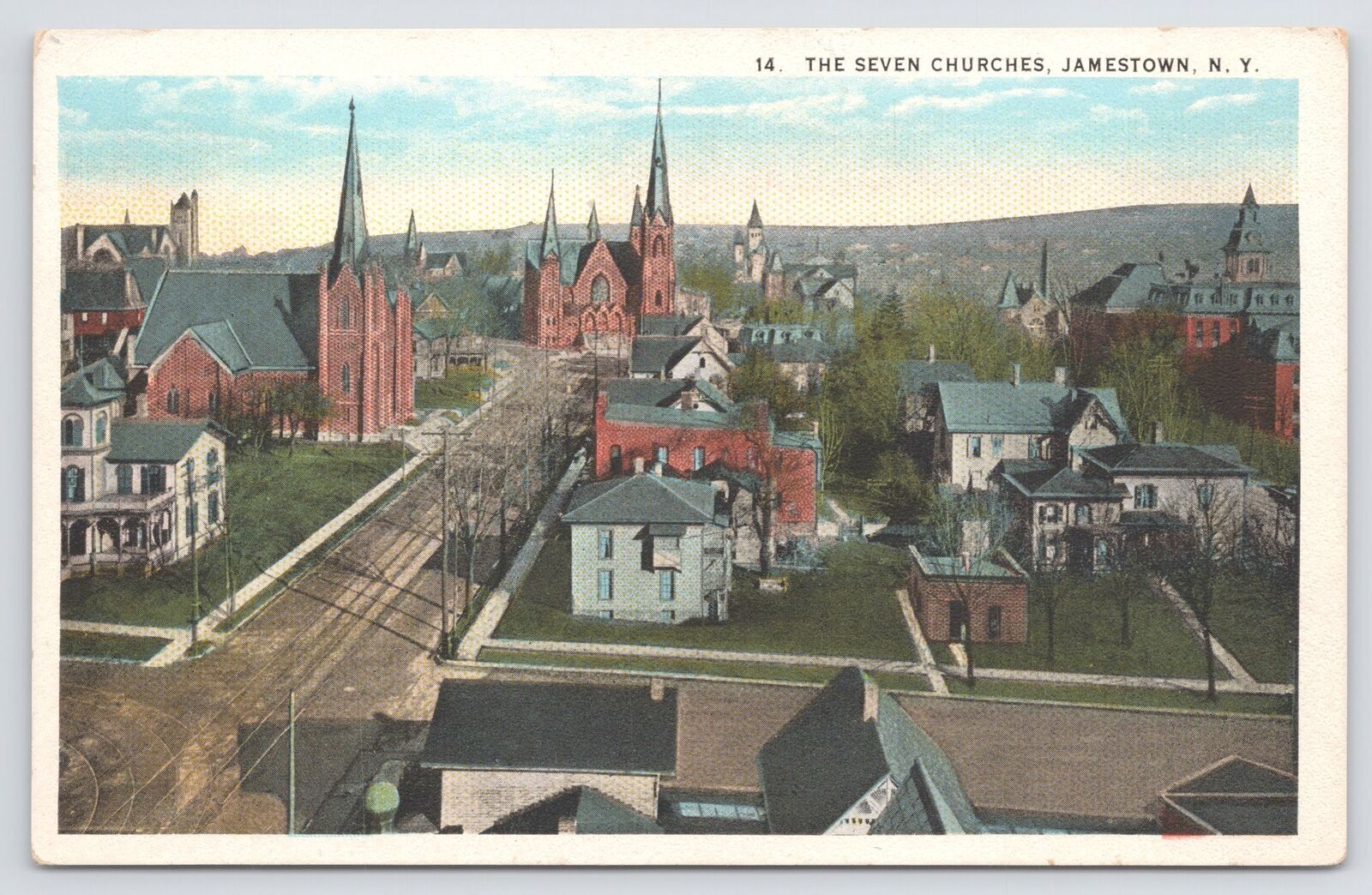 State View~Birds Eye Seven Churches Jamestown NY~Hamm Vintage Postcard