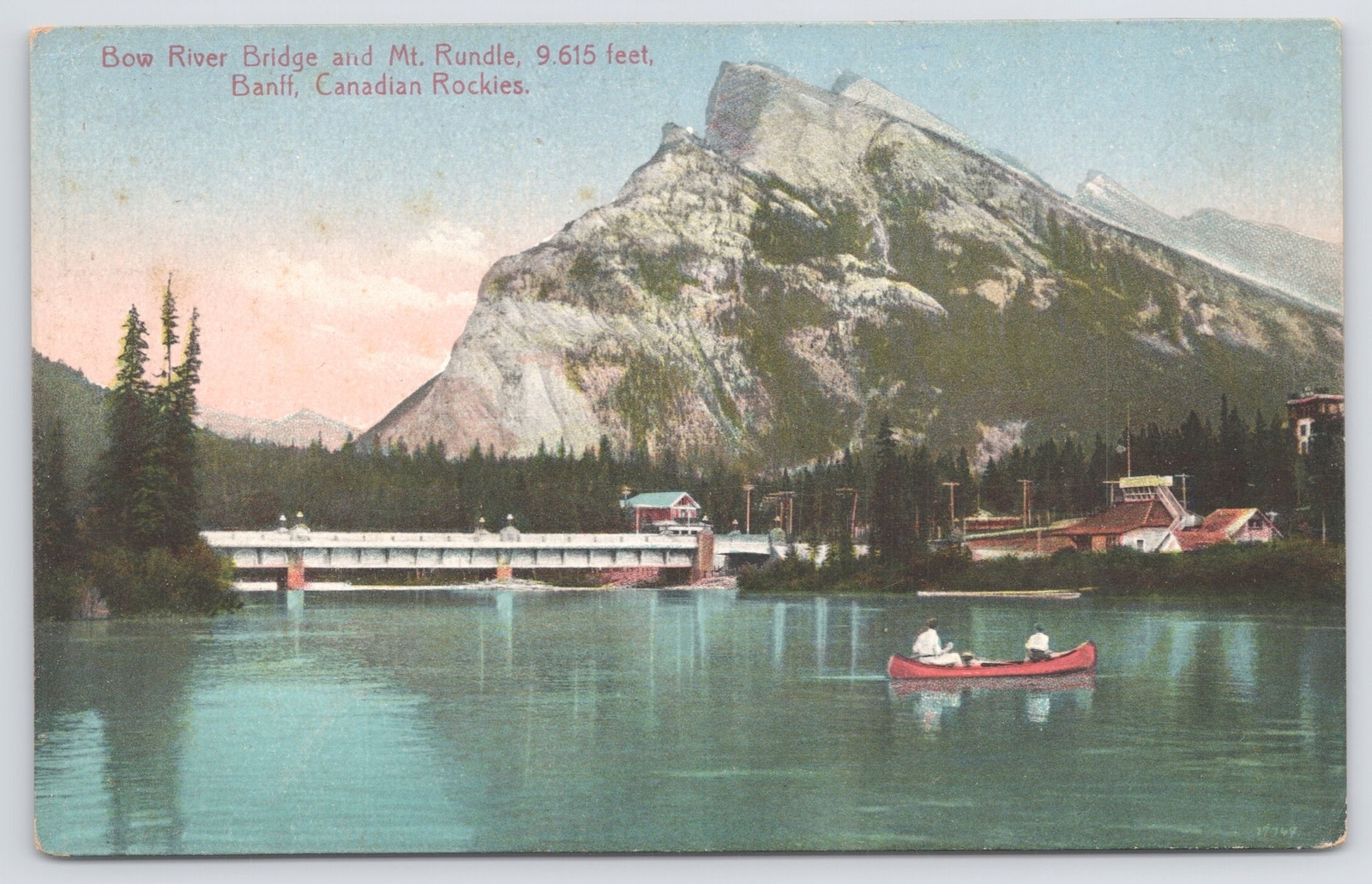 State View~Bow River Bridge & Mt Bundle Banff Canadian Rockies~Vintage Postcard