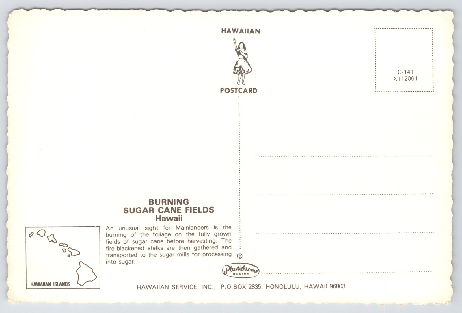 State View~Burning Sugar Cane Fields In Hawaii~Continental Postcard