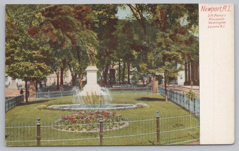 State View~CH Perrys Monument @ Washington Square Newport RI~Vintage Postcard