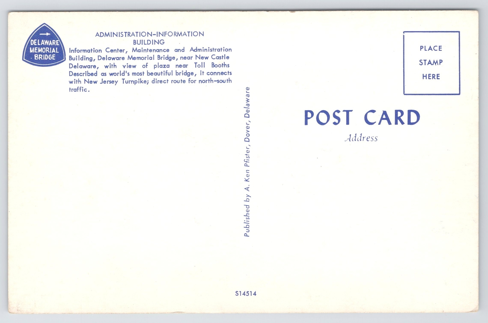 State View~Delaware Memorial Bridge Admin-Information Building~Vintage Postcard
