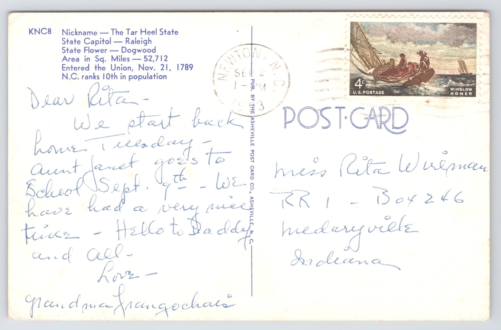 State View~Greetings From North Carolina Banner~State Map~Cardinal~PM 1993 PC
