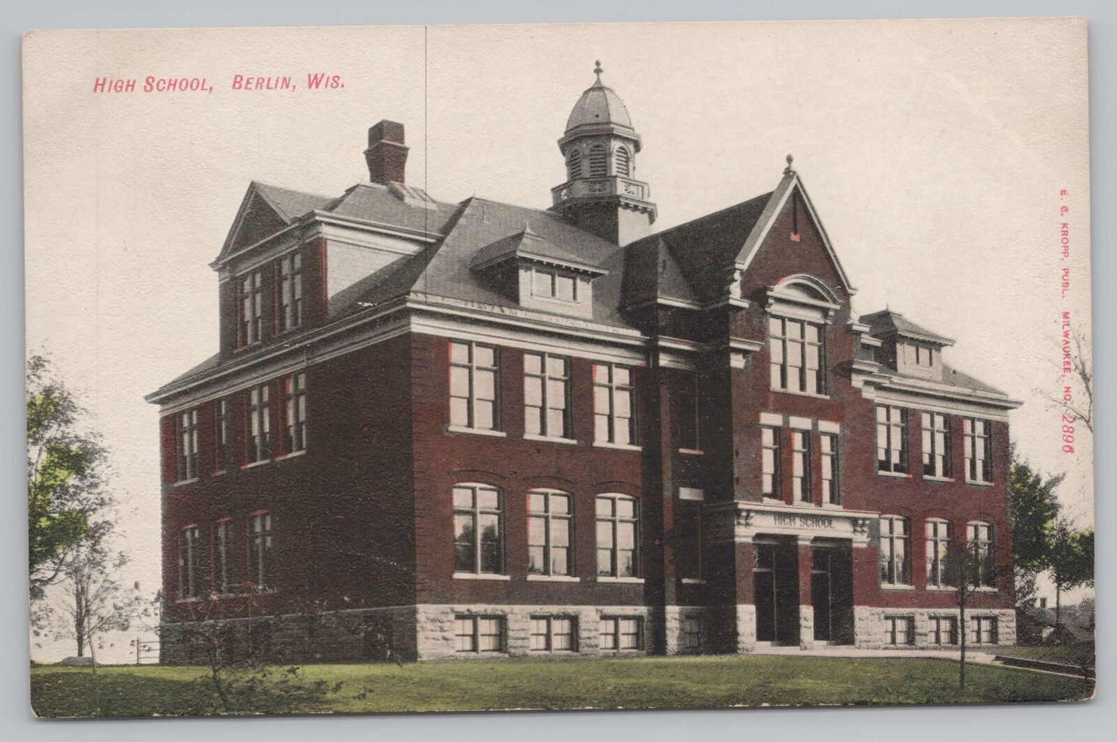 State View~High School Building Berlin Wisconsin~Vintage Postcard