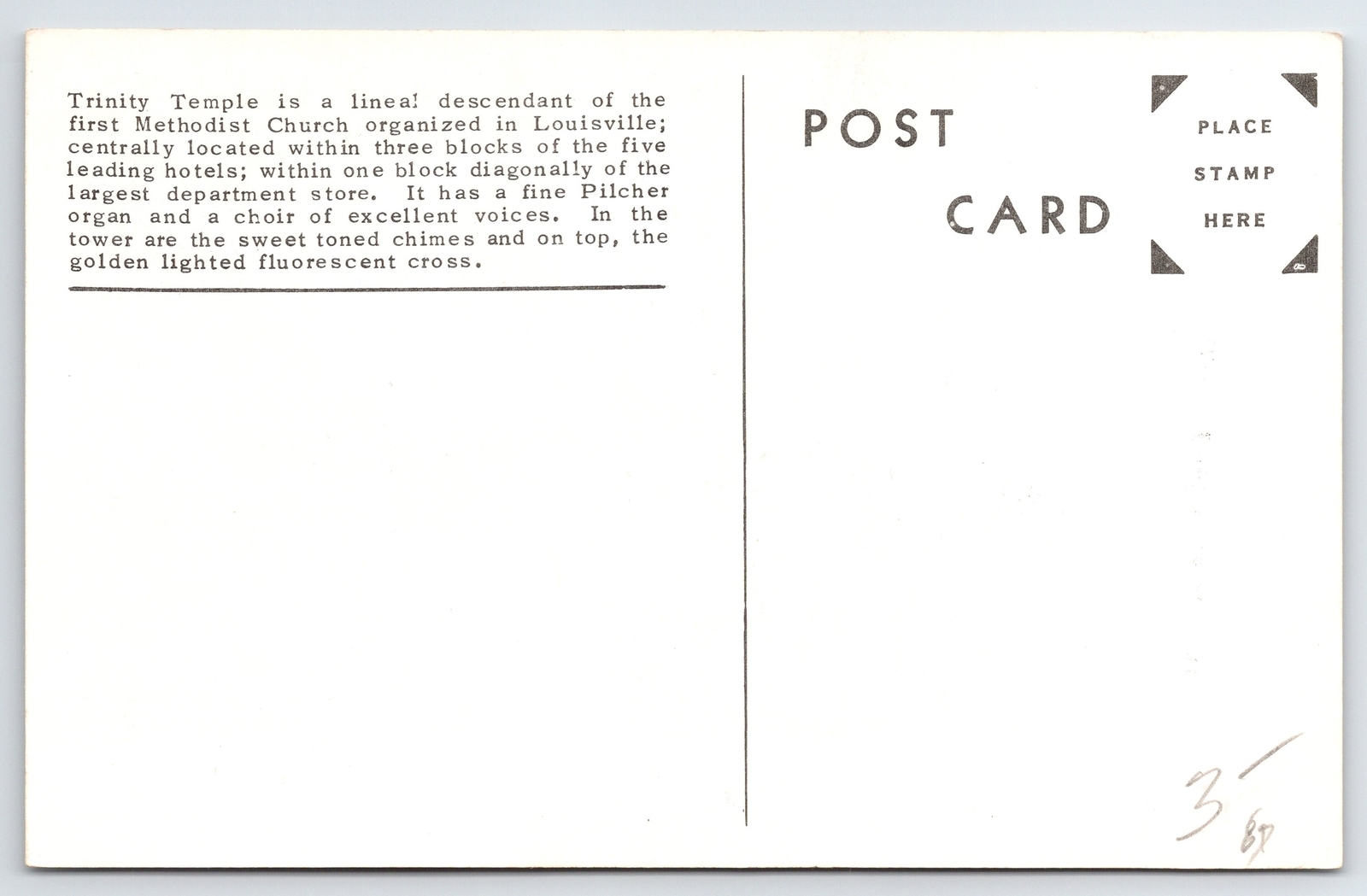 State View~Louisville Kentucky~Trinity Temple Methodist Church~Vintage Postcard