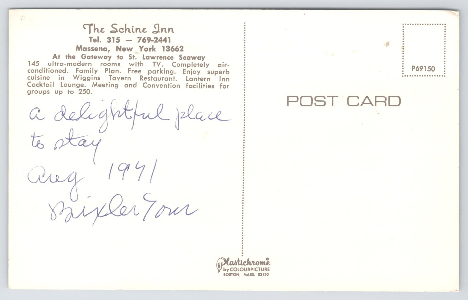 State View~Massena NY~The Schine Inn~Lantern Inn Cocktail Lounge~Vintage PC