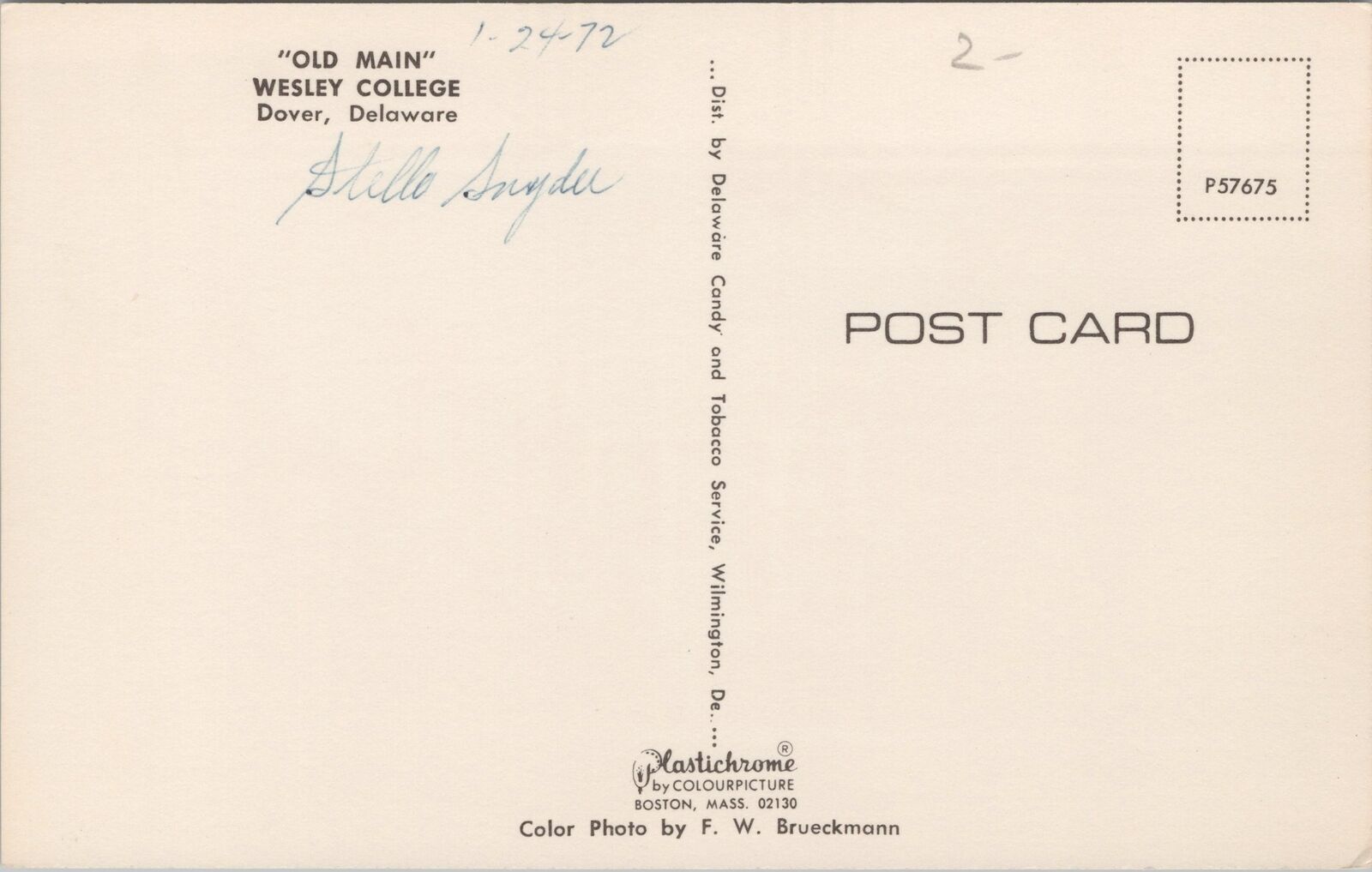 State View~Old Main Wesley College Dover Delaware~Vintage Postcard