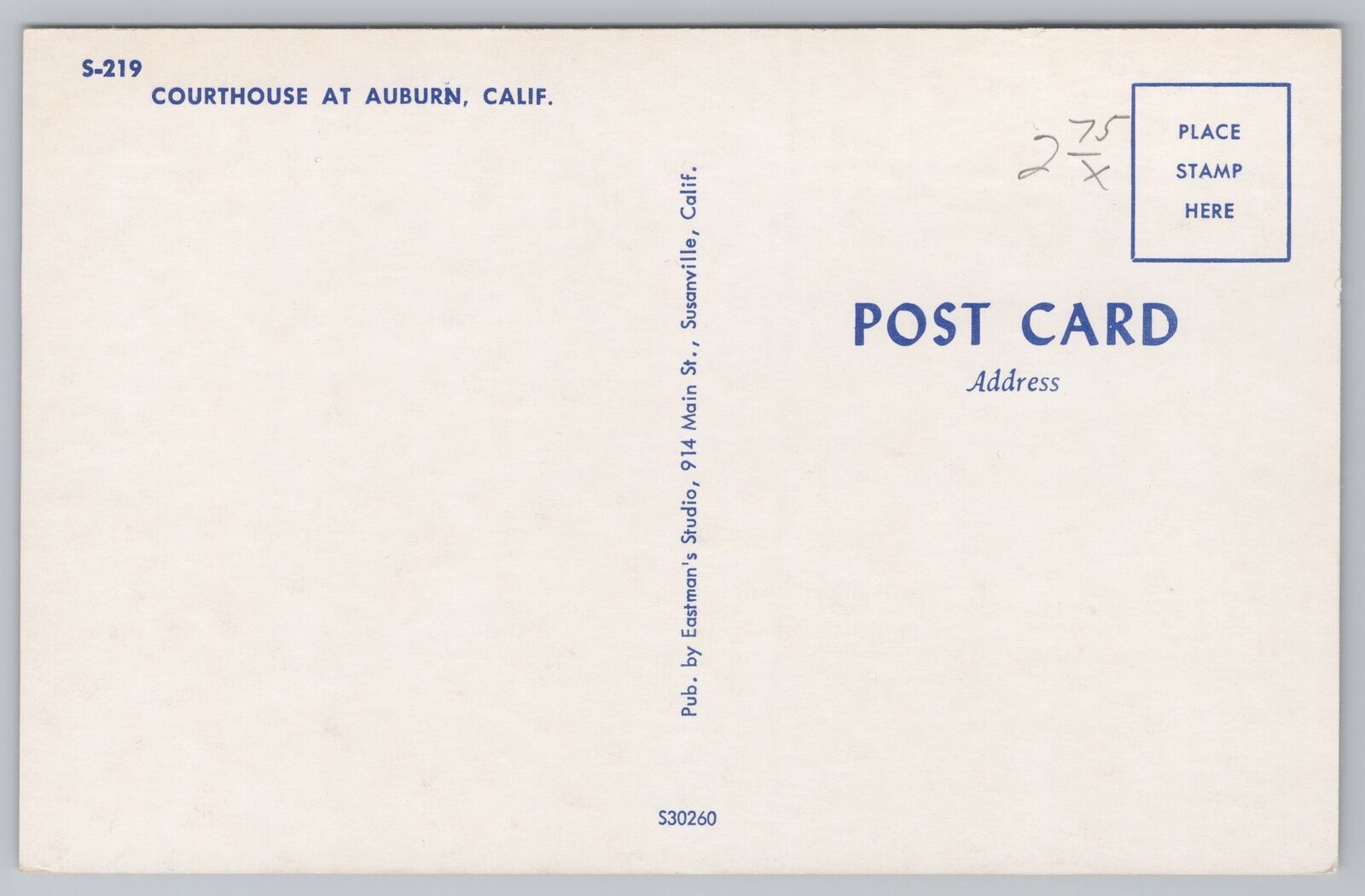State View~Stone Light & Courthouse w/Clock Tower @ Auburn California~Vintage PC