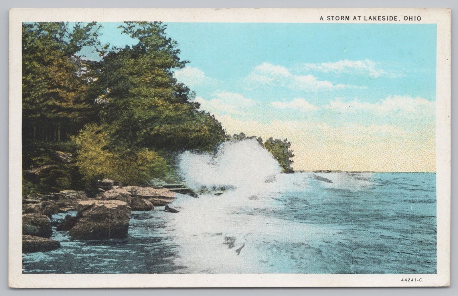 State View~Storm On Lake Shore~Lakeside Ohio~Vintage Postcard