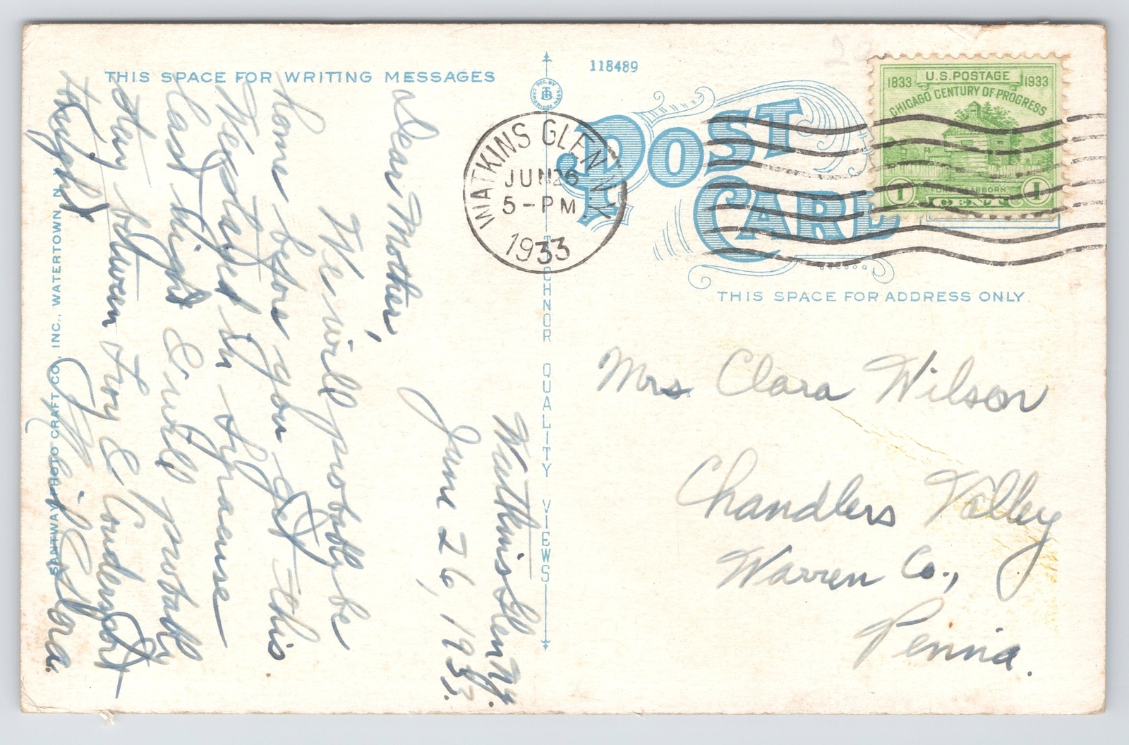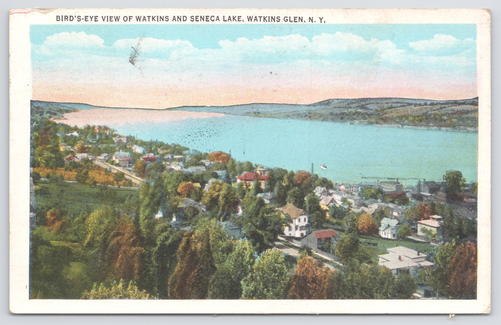 State View~Watkins Glen NY~Birdseye View Of Watkins & Seneca Lake~1933 Postcard