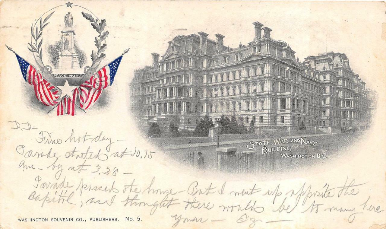 STATE WAR & NAVY BUILDING WASHINGTON D.C. MONUMENT PEACE MONUMENT POSTCARD 1902