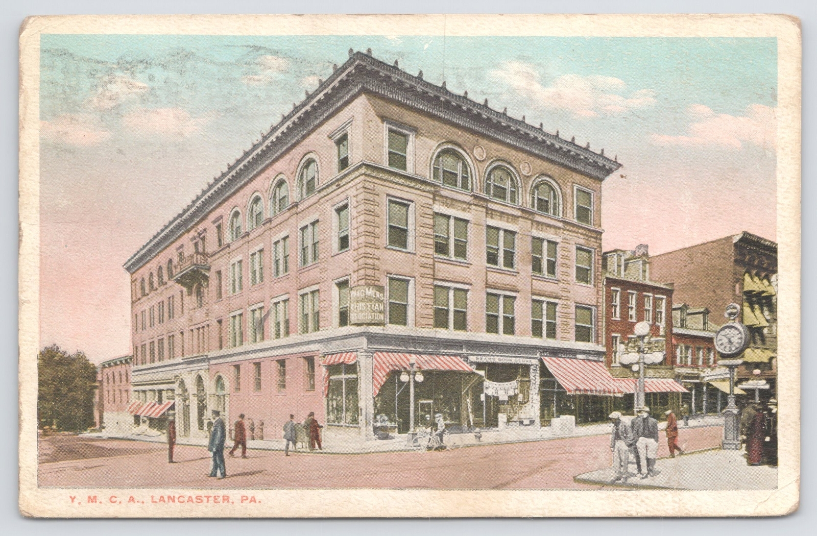 State~YMCA Bldg Of Lancaster Pennsylvania~Folks On Street Outside~Corner~PM 1916